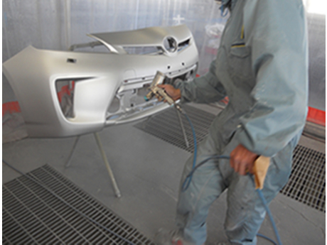 塗装業務は、鈑金で修理した箇所を元のボディと同様に違和感なく塗装し綺麗に仕上げる仕事です。相応の修錬が必要で、まさに職人技です。